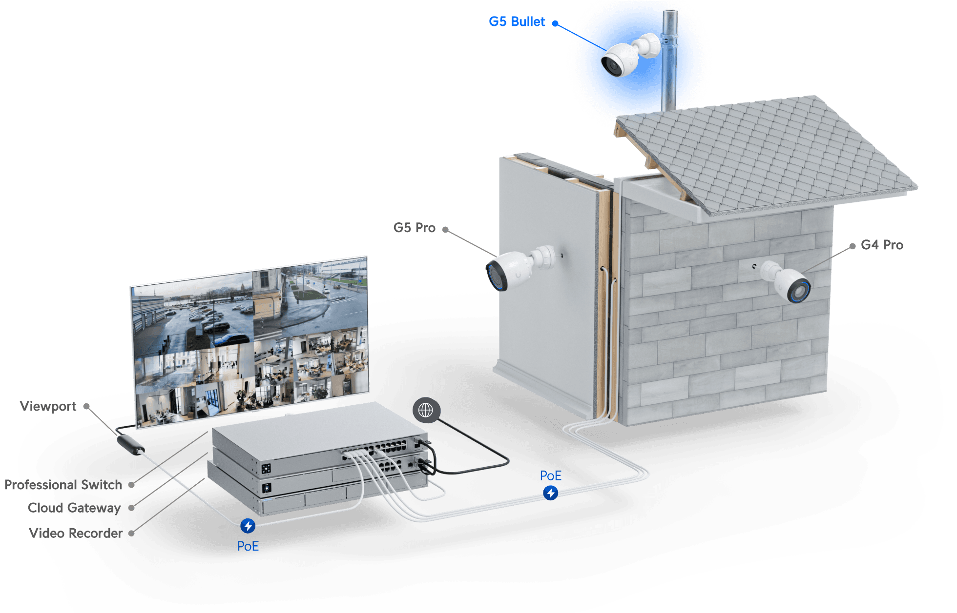 Nota: Las camaras UniFi funcionan con la aplicacion UniFi Protect almacenada en una Consola UniFi, necesaria para grabar, administrar y monitorear.